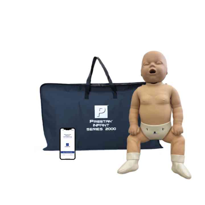 Prestan PP-IM-2000-1-MS Prestan CPR Infant mannequin, designed for teaching cardiopulmonary resuscitation. The mannequin is equipped with a lung and a chest adjusted to the GFR with the correct frequency monitor. Recommended by the American Heart Association AHA and European Resuscitation Consul ERC. High quality CPR mannequins.