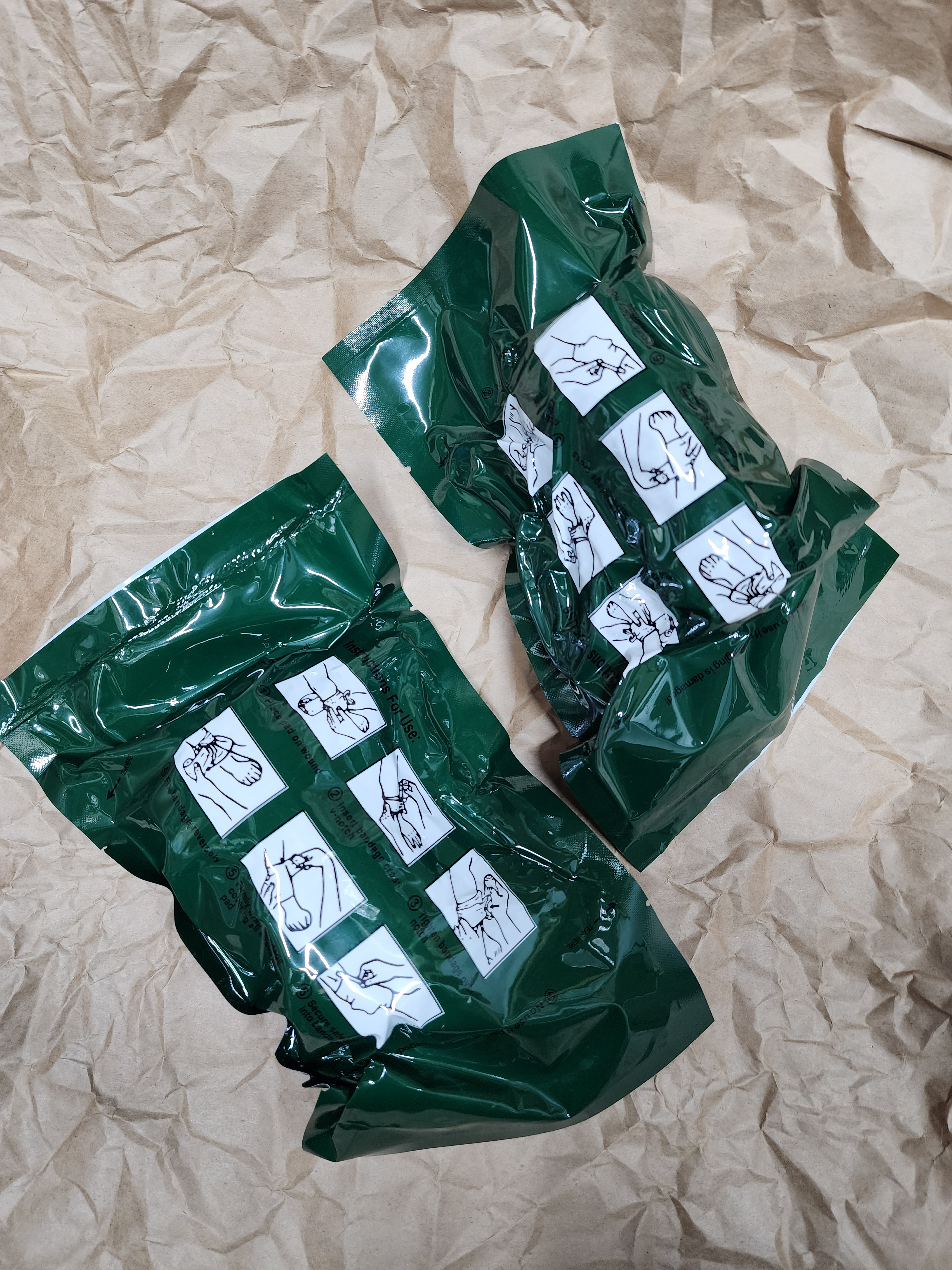 The vacuum sealed bandage package is made with extra wide 10 cm non-adherent absorption pad compact and portable.Traumatic injuries helps stop blood flow from severe traumatic wounds three layer vacuum packaging, small and lightweight. One piece wound care compression bandage designed for one handed self-rescue. Apply extra pressure to slow down bleeding and increase the hemostatic effect. Hemorrhagic wounds double seal, inner and outer vacuum packed. Bandage size: 10x170 cm length.